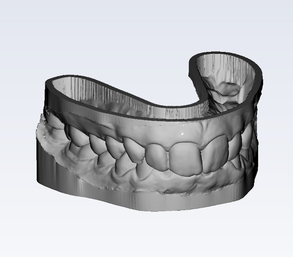 Romexis Model Analyzer przygotowuje modele do druku 3D poprzez zamknięcie modelu cyfrowego i dodanie pustej bazy za pomocą jednego kliknięcia.